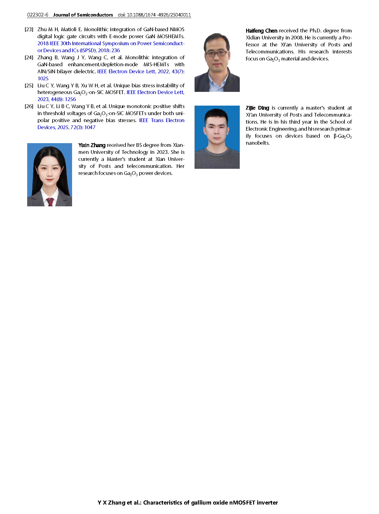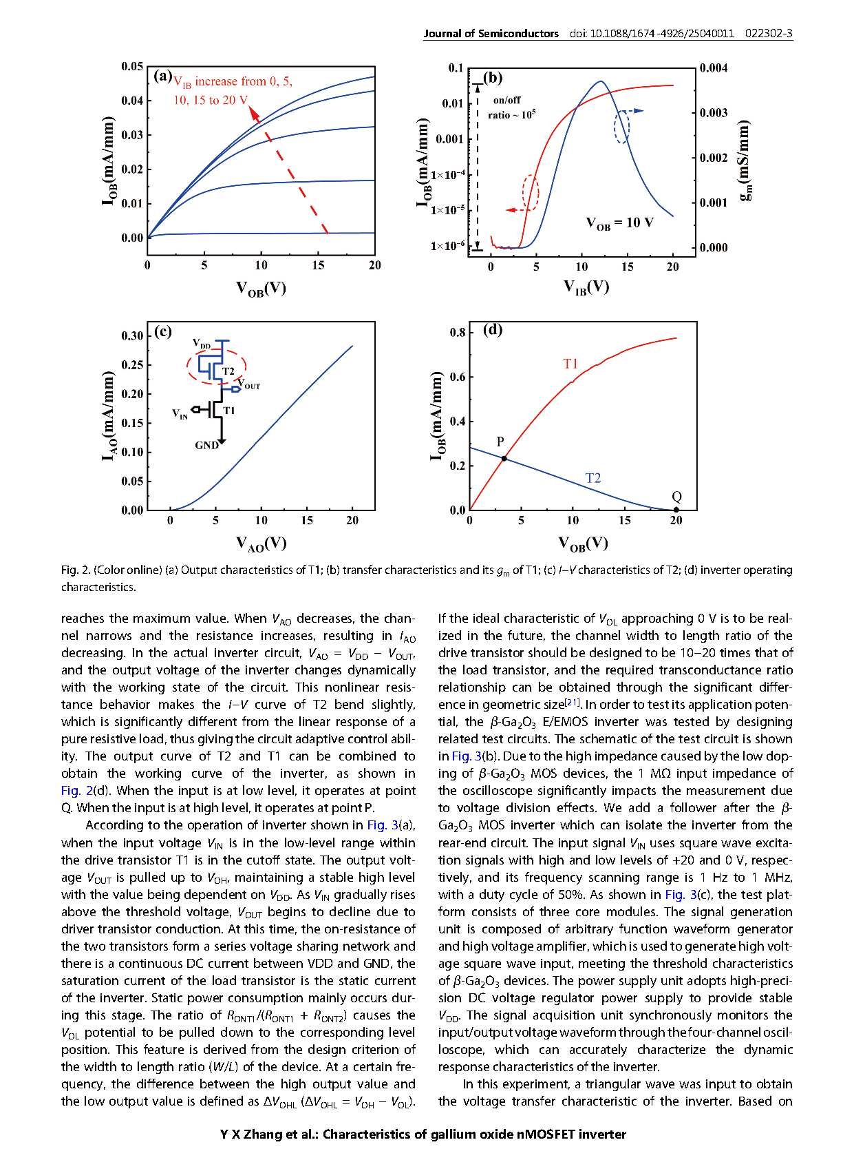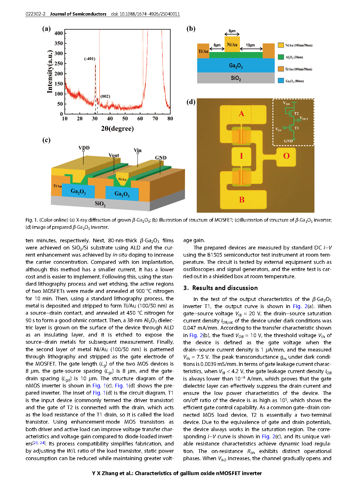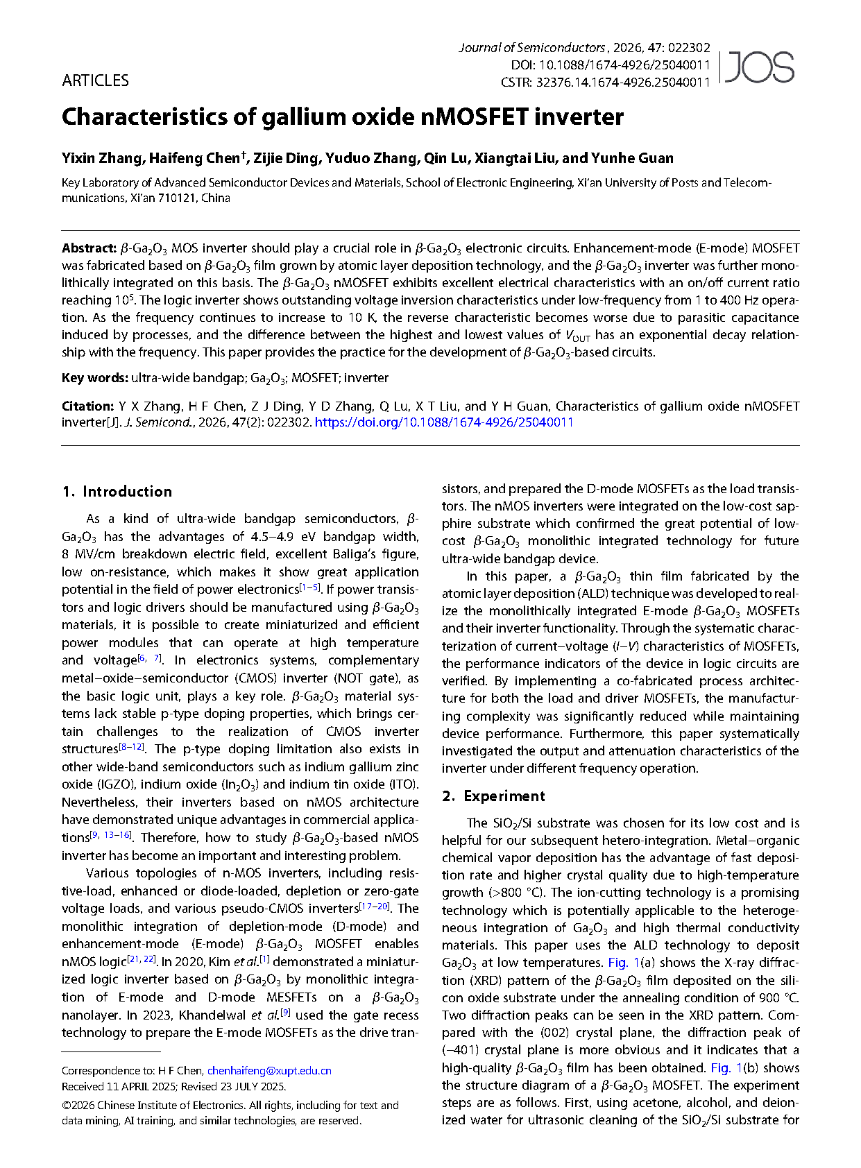 Researchers from the Xi’an University of Posts and Telecommunications have published a dissertation titled "Characteristics of gallium oxide nMOSFET inverter" in Journal of Semiconductors.