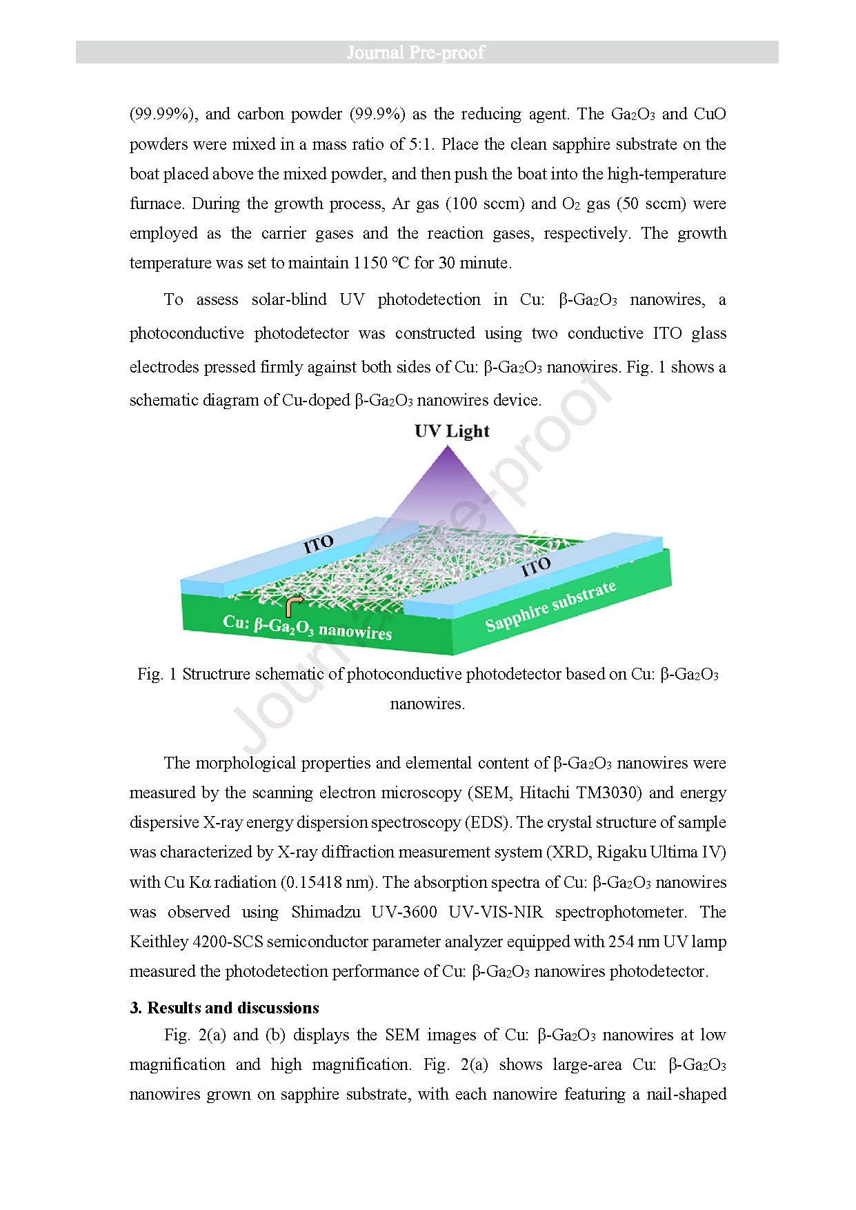 The Cu: β-Ga2O3 nanowires were used to fabricate photoconductive UV photodetector with ITO electrodes.