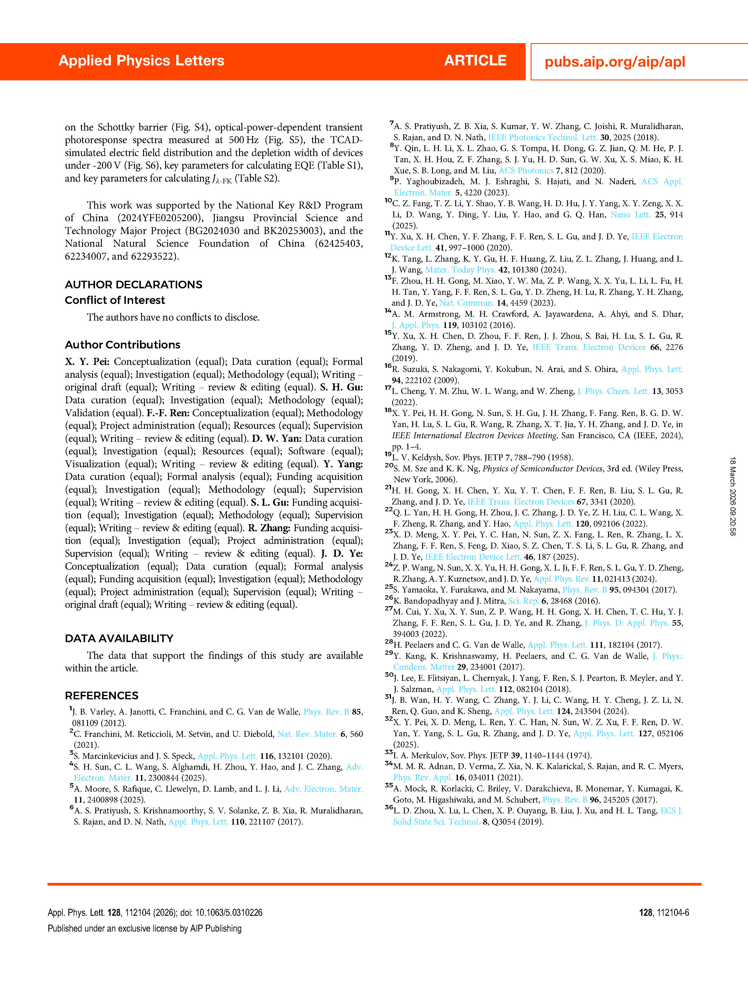 Researchers from the School of Electronic Science and Engineering, Nanjing University and School of Integrated Circuits, Jiangnan University have published a dissertation titled "Quantitative insight into illumination-induced barrier lowering mediated by self-trapped-holes in Ga₂O₃ Schottky photodiodes" in Applied Physics Letters.