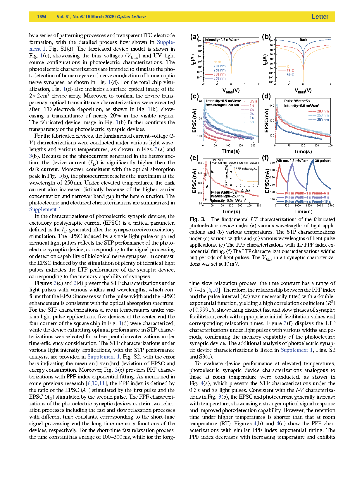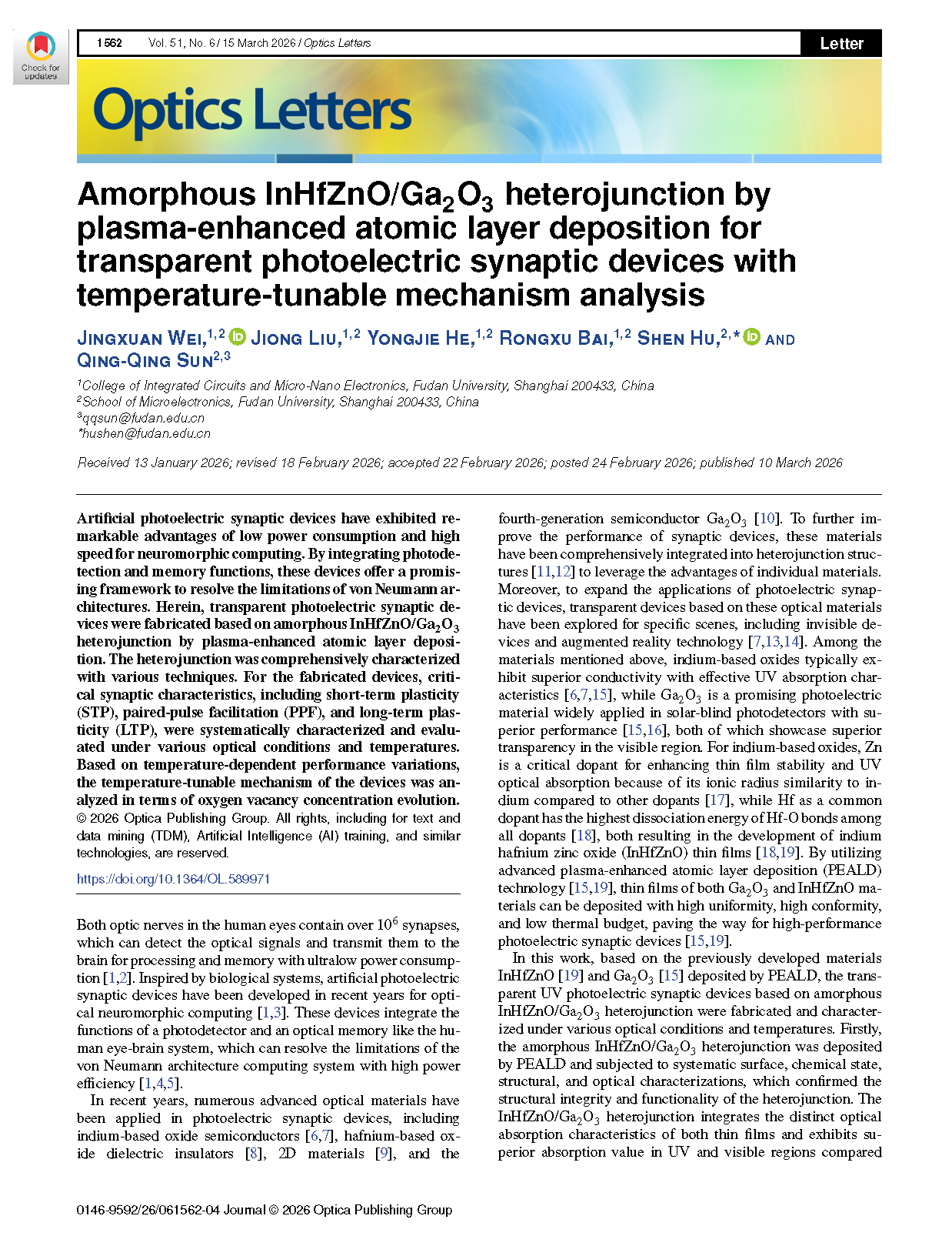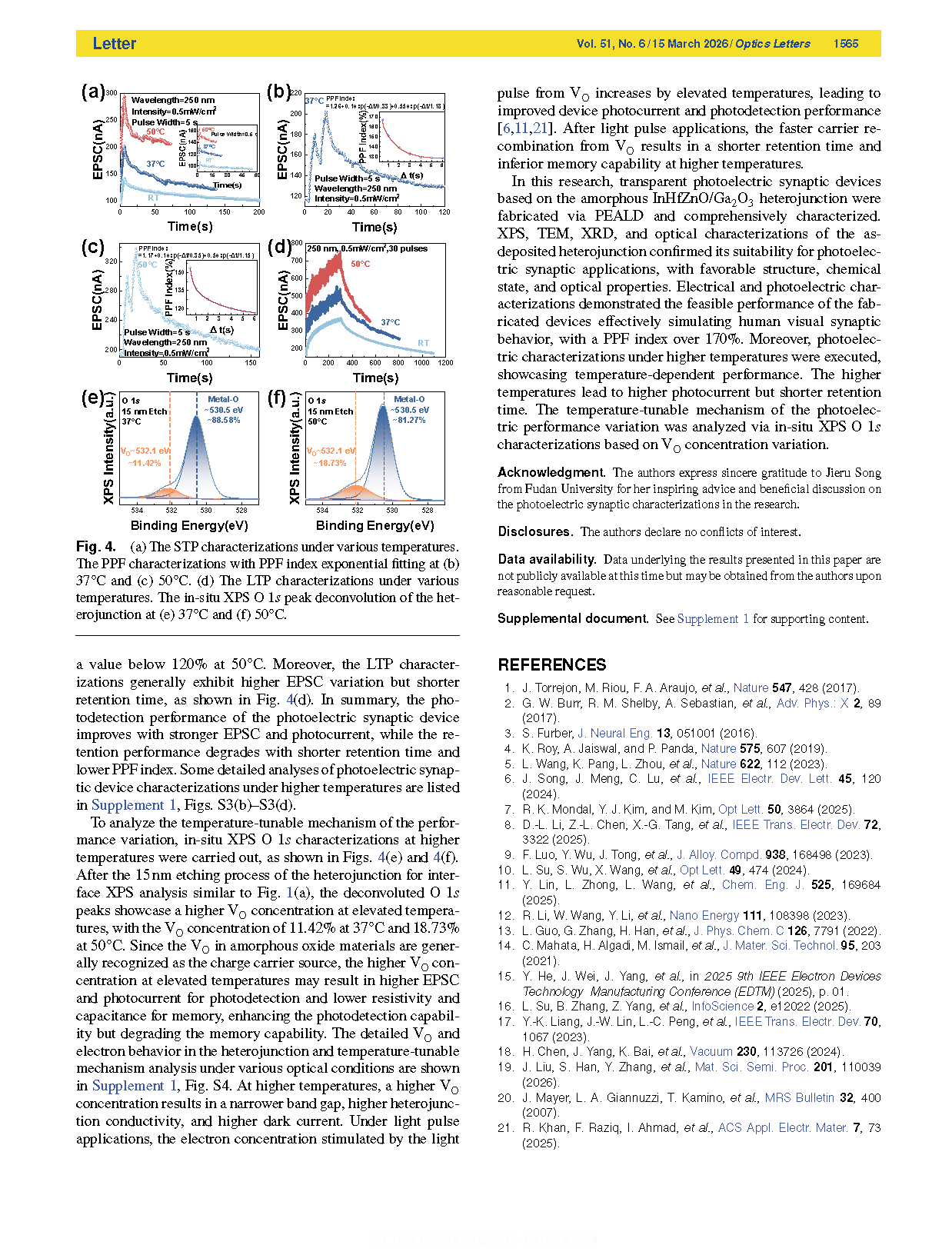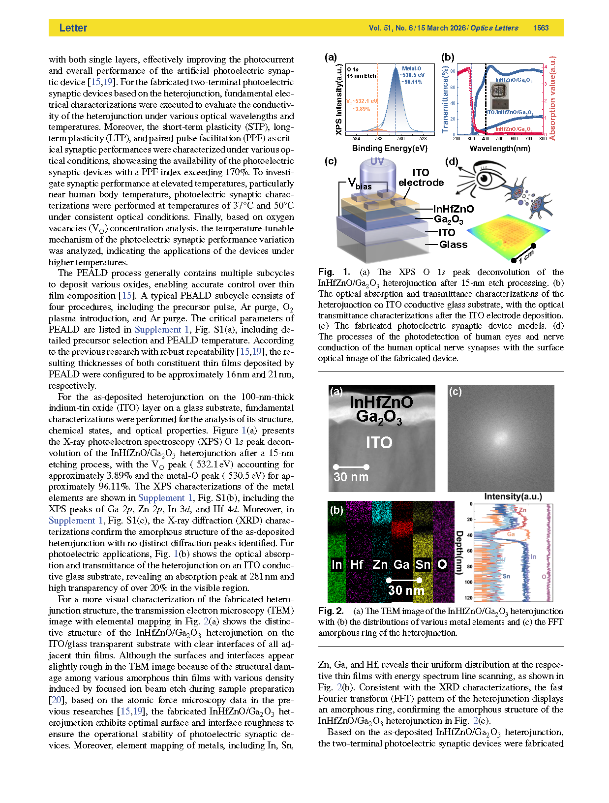 Researchers from the Fudan University have published a dissertation titled "Amorphous InHfZnO/ Ga2O3 heterojunction by plasma-enhanced atomic layer deposition for transparent photoelectric synaptic devices with temperature-tunable mechanism analysis" in Optics Letters.