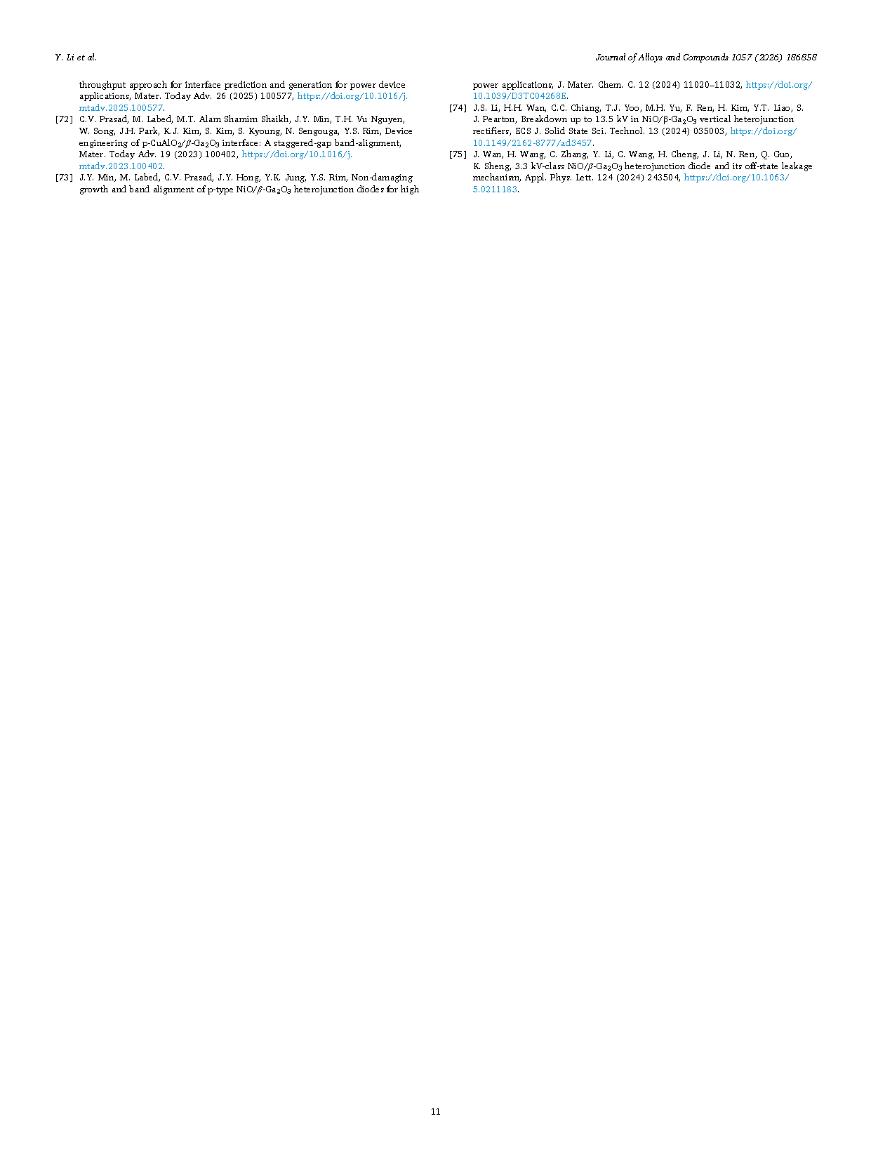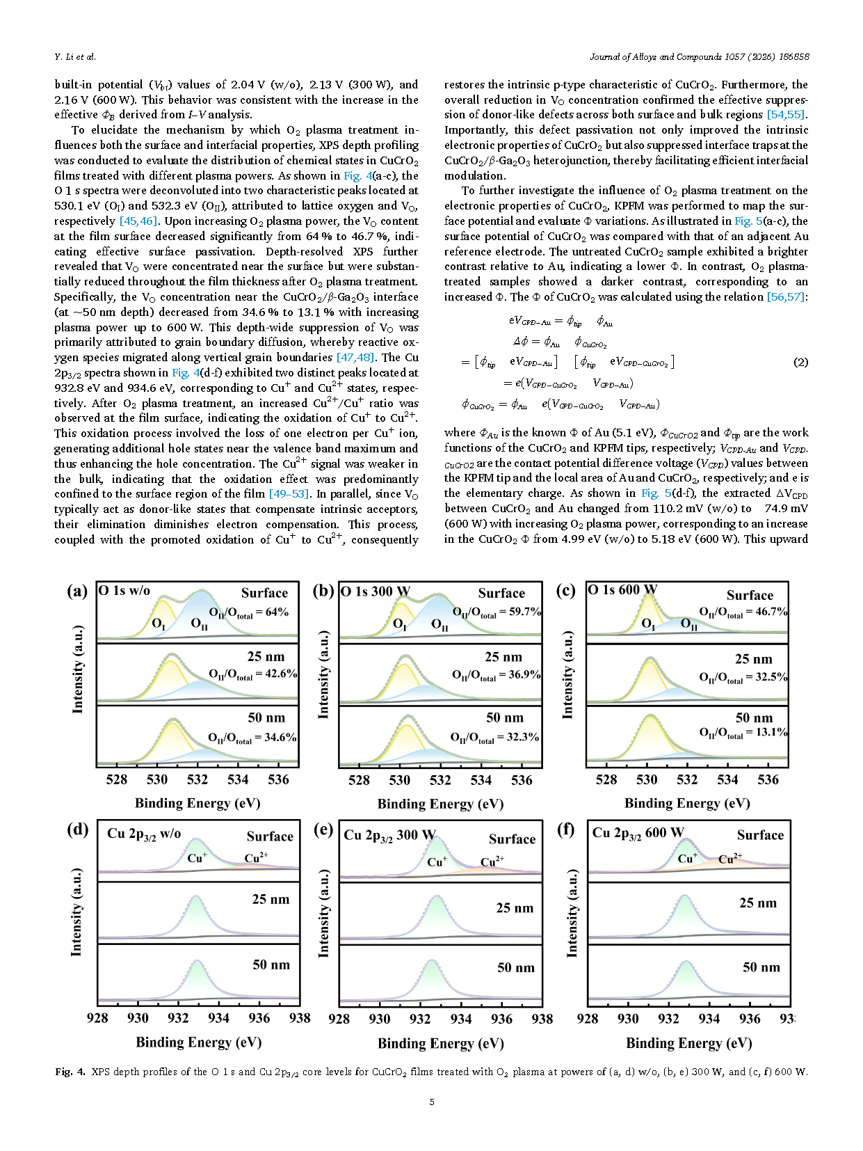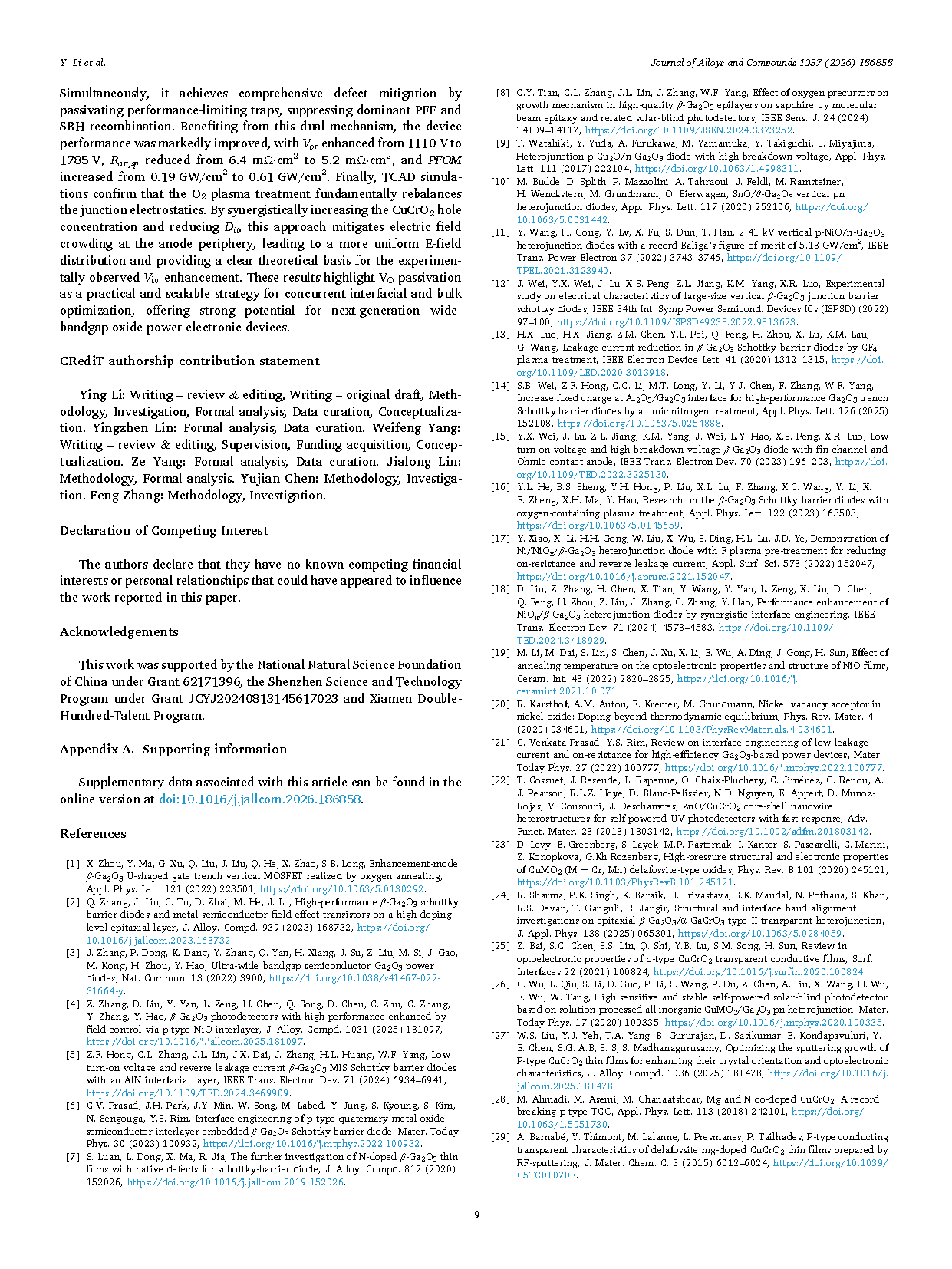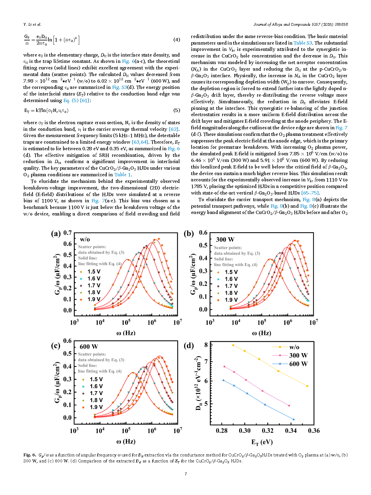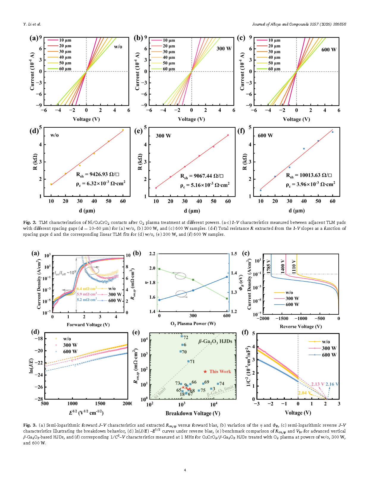A research team led by Prof. Weifeng Yang from Xiamen University has published a paper in the international journal Journal of Alloys and Compounds, entitled:Synergistic work function modulation and interface traps suppression in CuCrO₂/β-Ga₂O₃ p-n heterojunction diodes through oxygen vacancy passivation.
