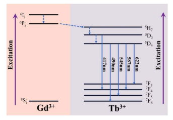 Fig. 7. The illustration of energy transfer between Gd3+ and Tb3+.