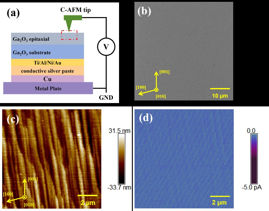 β-gallium oxide (β-Ga2O3), characterized by an ultra-wide bandgap of 4.5 eV, a high breakdown electric field strength of 8 MV/cm, and intrinsic solar-blind ultraviolet properties, has emerged as an ideal semiconductor material for high-power electronic devices and solar-blind ultraviolet photodetectors.Among the three crystallographic planes of β-Ga2O3, the epitaxial layer on the (010) substrate demonstrates a notably high electron mobility approaching the theoretical limit of approximately 200 cm² V⁻¹ s⁻¹, superior growth rates, and enhanced thermal conductivity relative to the other planes, establishing the optimal substrate plane for the growth of thick epitaxial film and the fabrication of high-performance devices. However, a large number of micron-scale hillock defects were observed on the (010) epilayer, with a density ranging from 103 to 104 cm-2, resulting in a roughened surface regardless of different growth methods. Recently, while some research has made initial investigations into the origin, features, and control methods of hillock defects, the precise effect of various types of hillock defects on device leakage behavior under low reverse bias conditions is still not well understood. Hence, the identification of the primary leakage channel in β-Ga2O3 (010) epitaxial surface vertical devices under low bias conditions, along with an understanding of their leakage mechanisms, holds considerable scientific significance and practical relevance for the advancement of high-performance β-Ga2O3 epitaxial growth and power device applications.