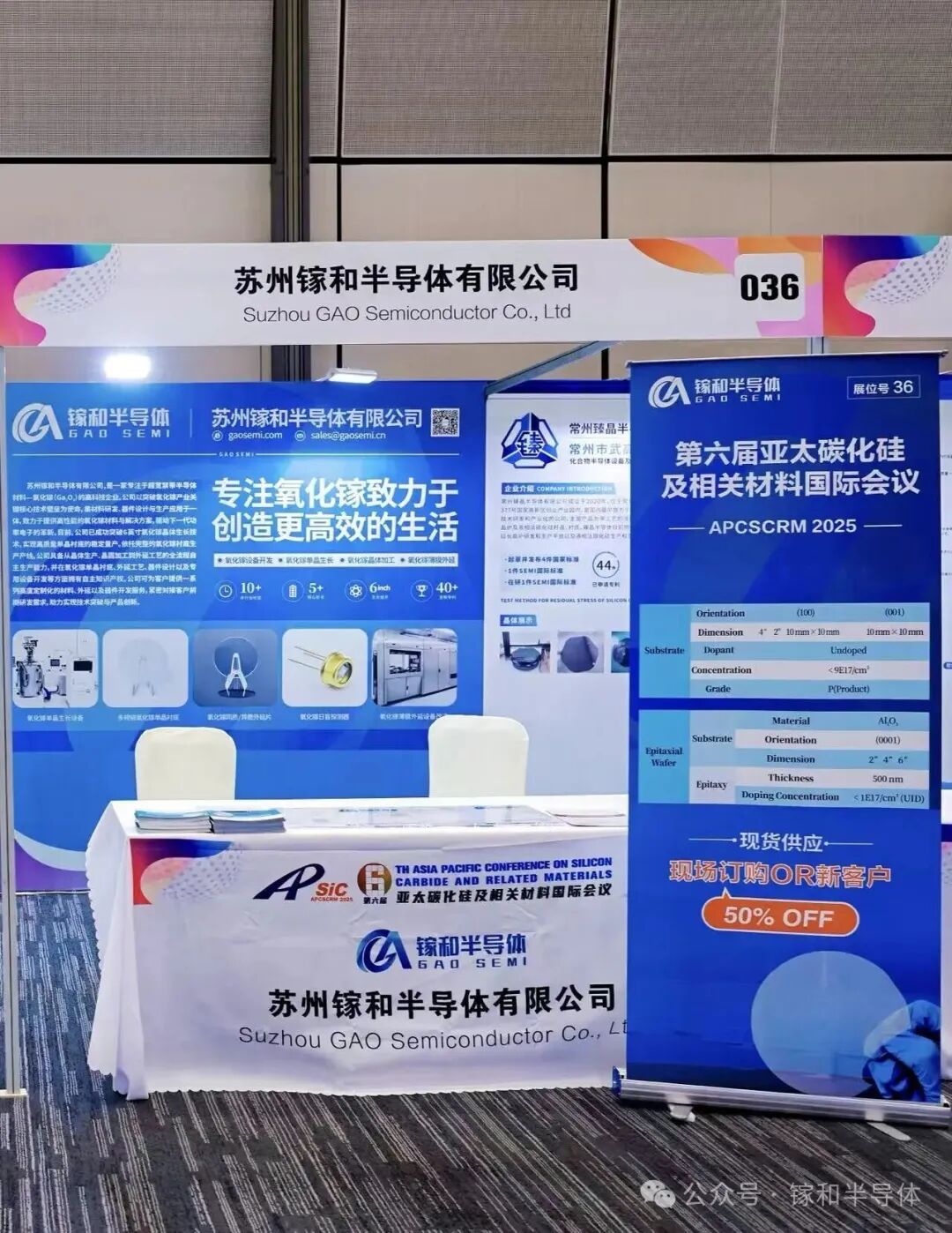 At this exhibition, GAO SEMI showcased 2-inch and 4-inch Gallium Oxide substrates with various electrical properties on (100) and (001) orientations, as well as 2-inch homoepitaxial and 2- to 6-inch heteroepitaxial wafers.
