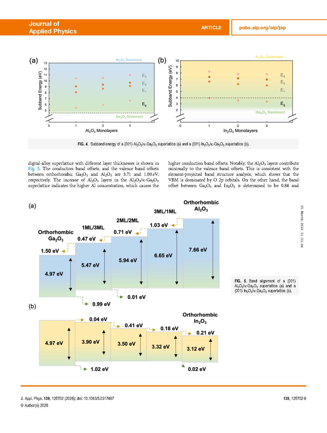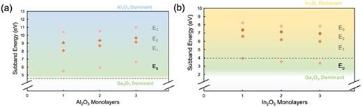 FIG. 4. Subband energy of a (001) Al2O3/κ-Ga2O3 superlattice (a) and a (001) In2O3/κ-Ga2O3 superlattice (b).