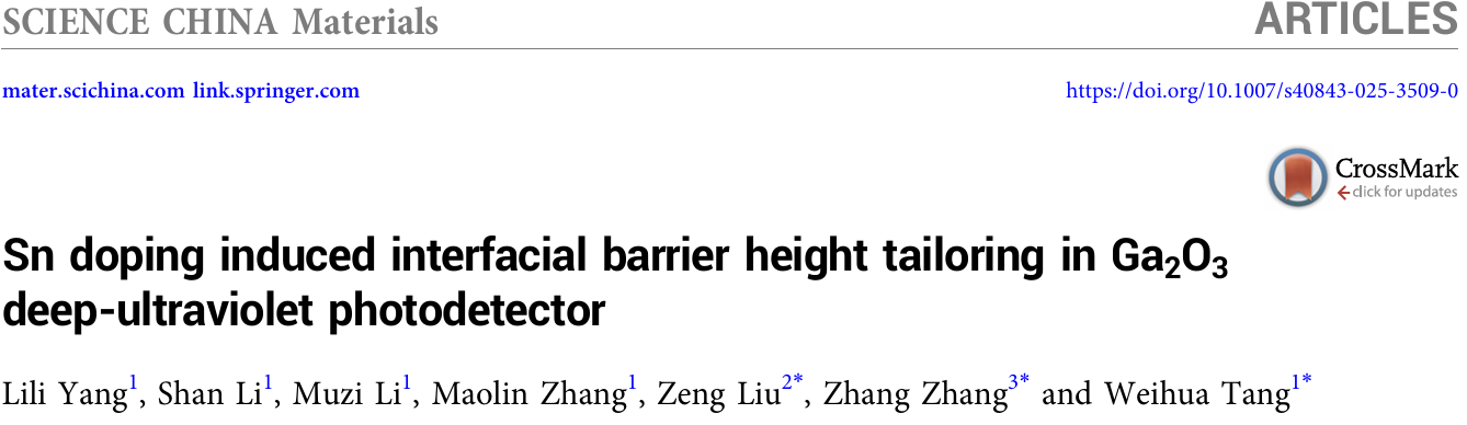 【会员论文】南京邮电大学唐为华等:锡掺杂诱导氧化镓深紫外光电探测器界面势垒高度裁剪