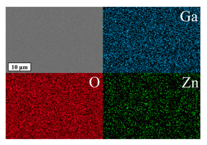 图 3. 纳米晶 ZGO 薄膜中 Ga、O 和 Zn 元素的 EDX 映射图。