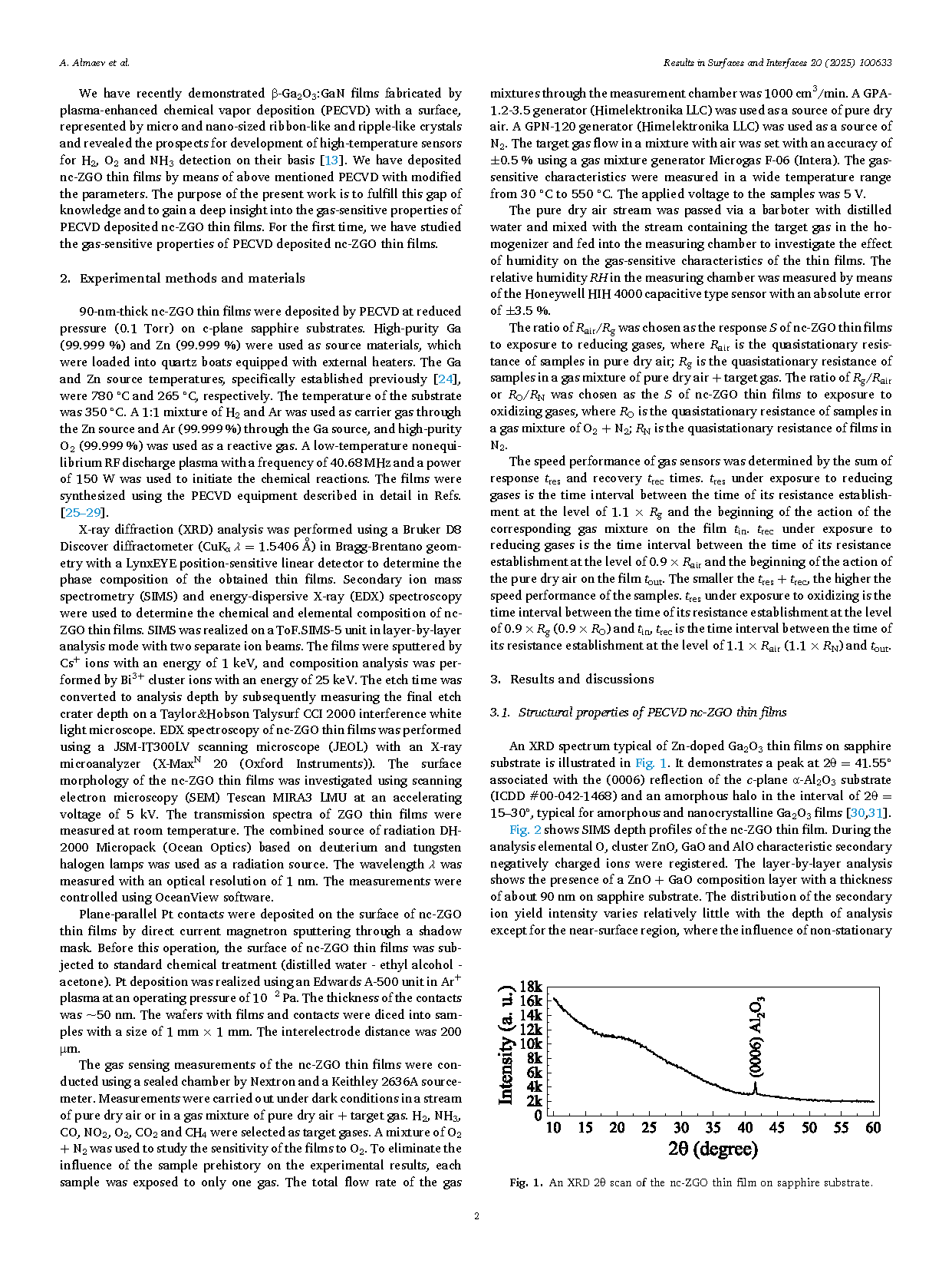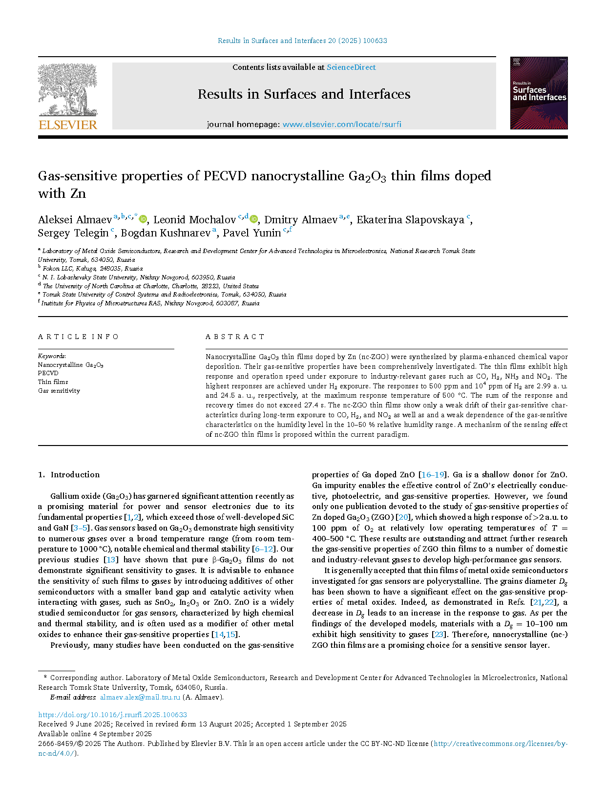 【国际论文】俄罗斯托木斯克国立研究大学:掺锌 PECVD 纳米晶 Ga₂O₃ 薄膜的气体敏感特性