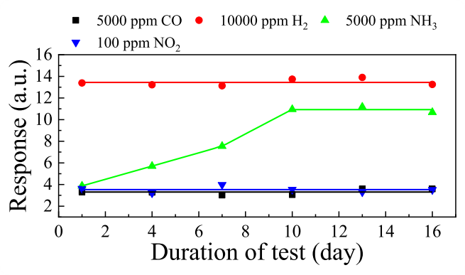 图 9. nc-ZGO 薄膜在 T = 500 ℃ 下响应随测试时间变化的依赖性。