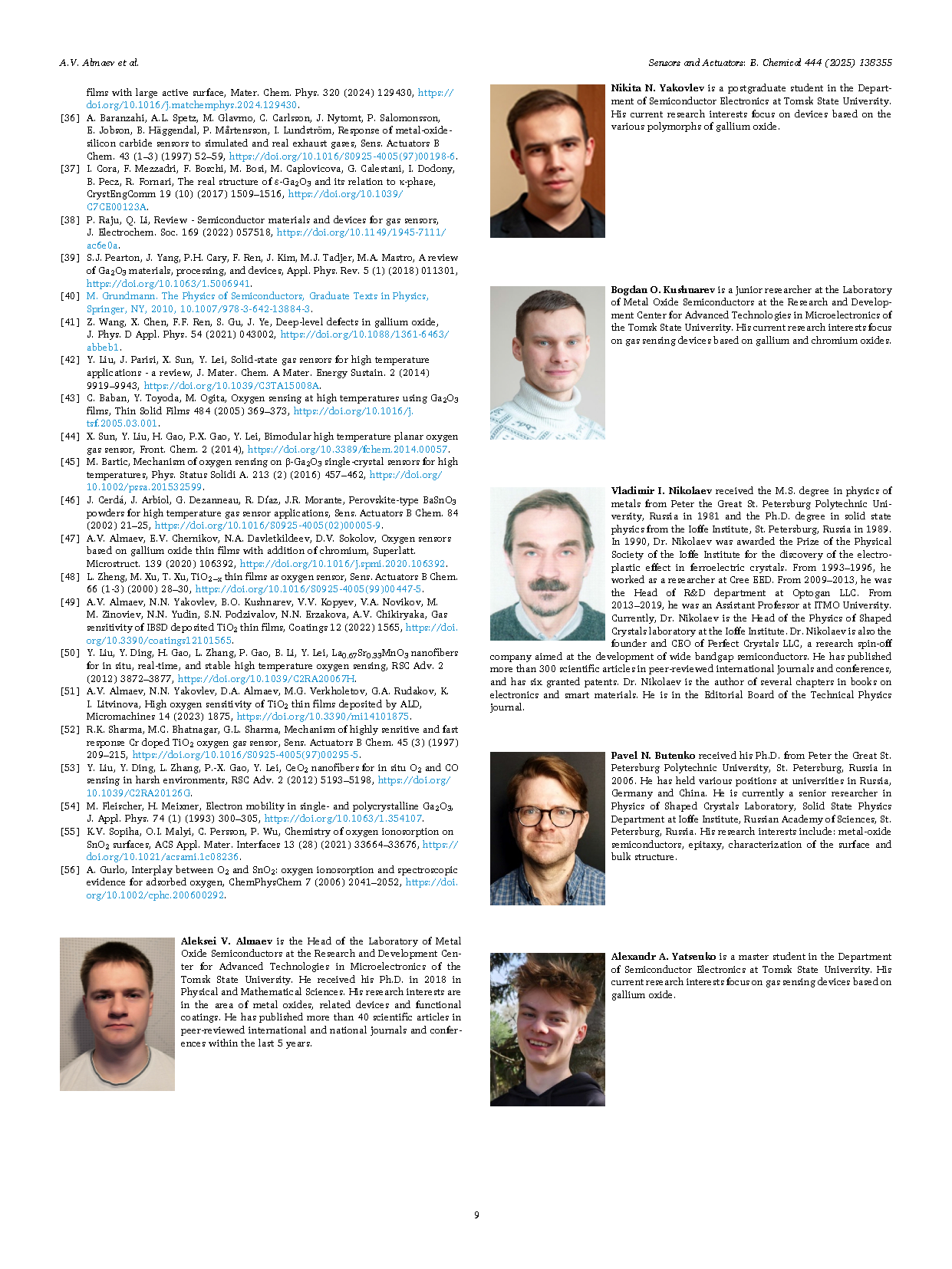 Aleksei V. Almaev,本文第一作者,托木斯克国立大学微电子先进技术研发中心金属氧化物半导体实验室的负责人。于 2018 年获得物理数学科学博士学位。于金属氧化物、相关器件和功能涂层领域进行研究。在过去 5 年里,他在国际和国内同行评审期刊及会议上发表了 40 多篇科学论文。